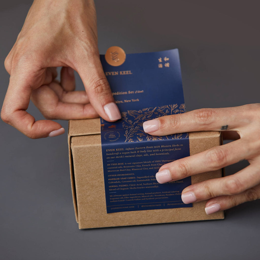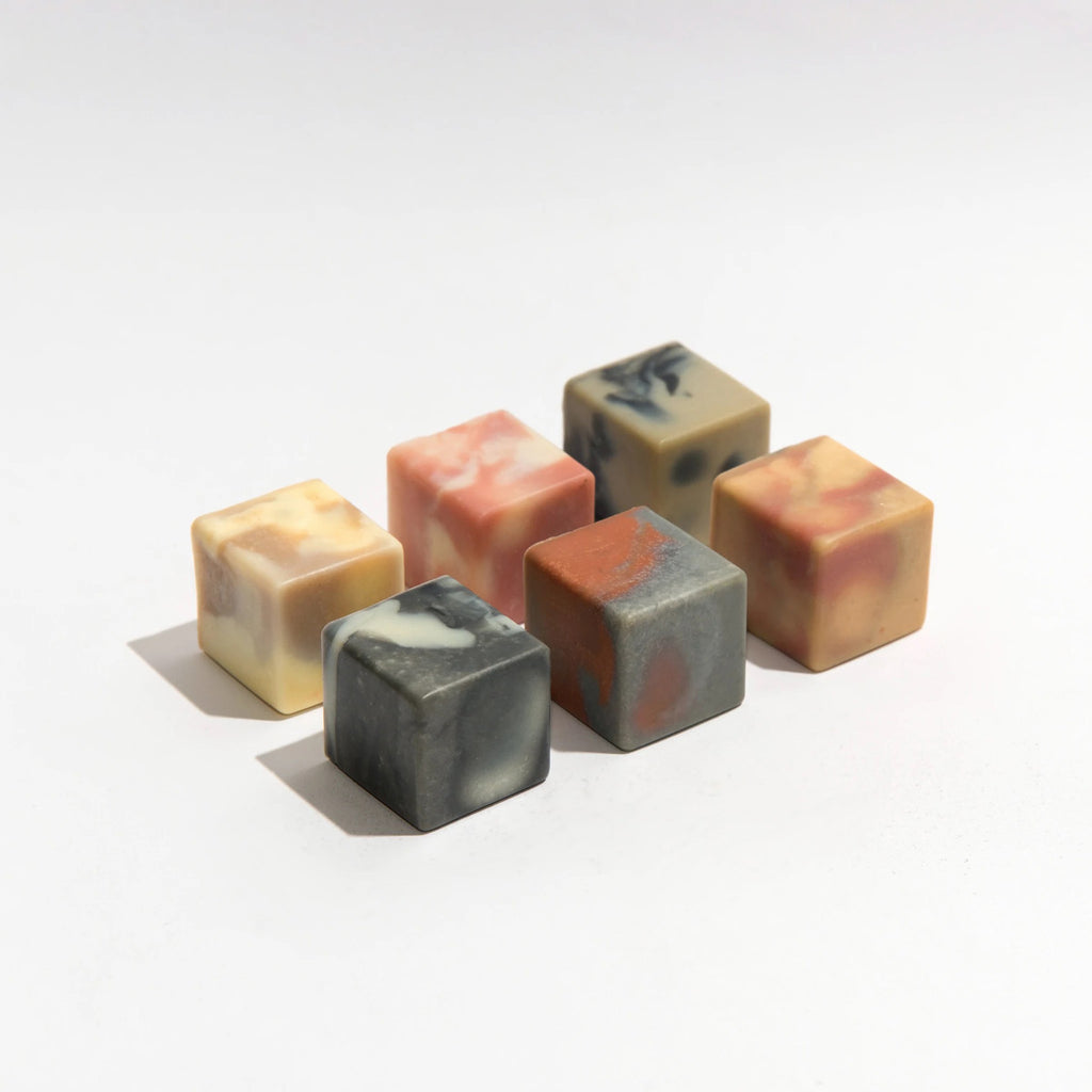 Made with saponified oils of coconut, Fair-trade/ RSPO/Sustainable palm fruit, and olive. Moroccan red clay, French rose clay, Dead Sea clay, Rhassoul clay, Activated charcoal, 100% therapeutic essential oil blends, distilled rice water.